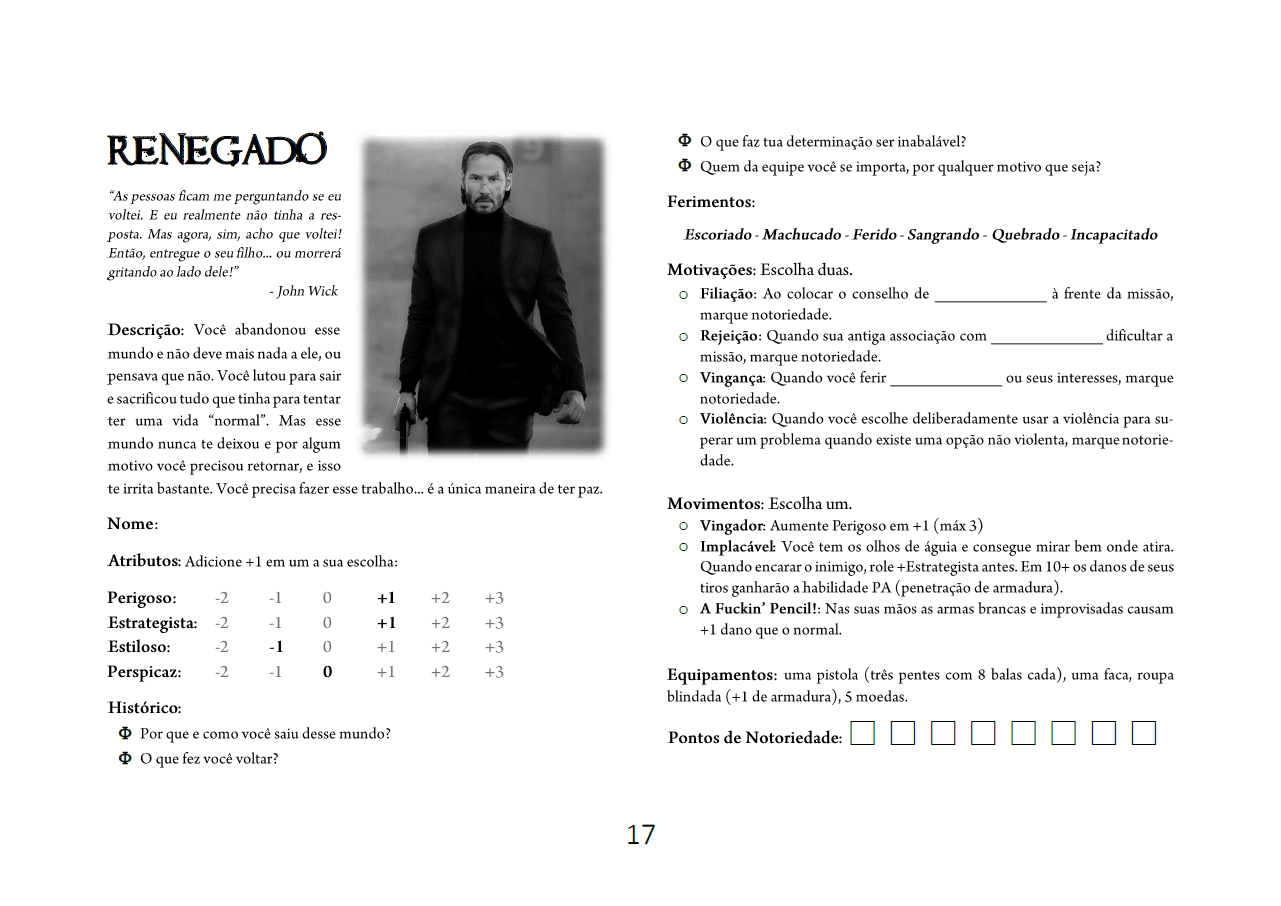 | Tags | Action RPG, coletivo-potocando, john-wick, Narrative, No AI, PbtA, Tabletop role-playing game |